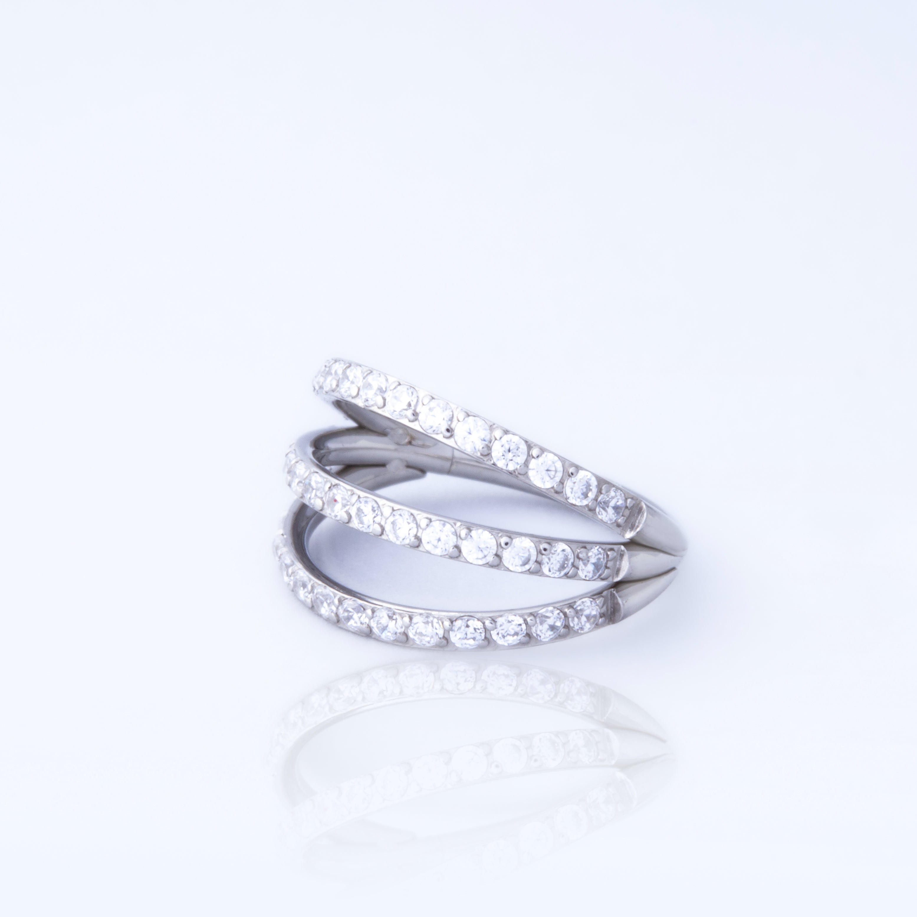 Ideal para: Perfurações que se beneficiam de argolas decorativas, como Septo, Daith (onde o cluster se encaixa na curva interna) e Hélix.