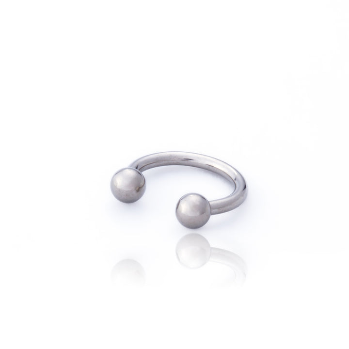 Uma argola aberta e funcional, popularmente conhecida como Circular Barbell. É uma das joias mais versáteis, com topos removíveis que facilitam a limpeza e a troca.