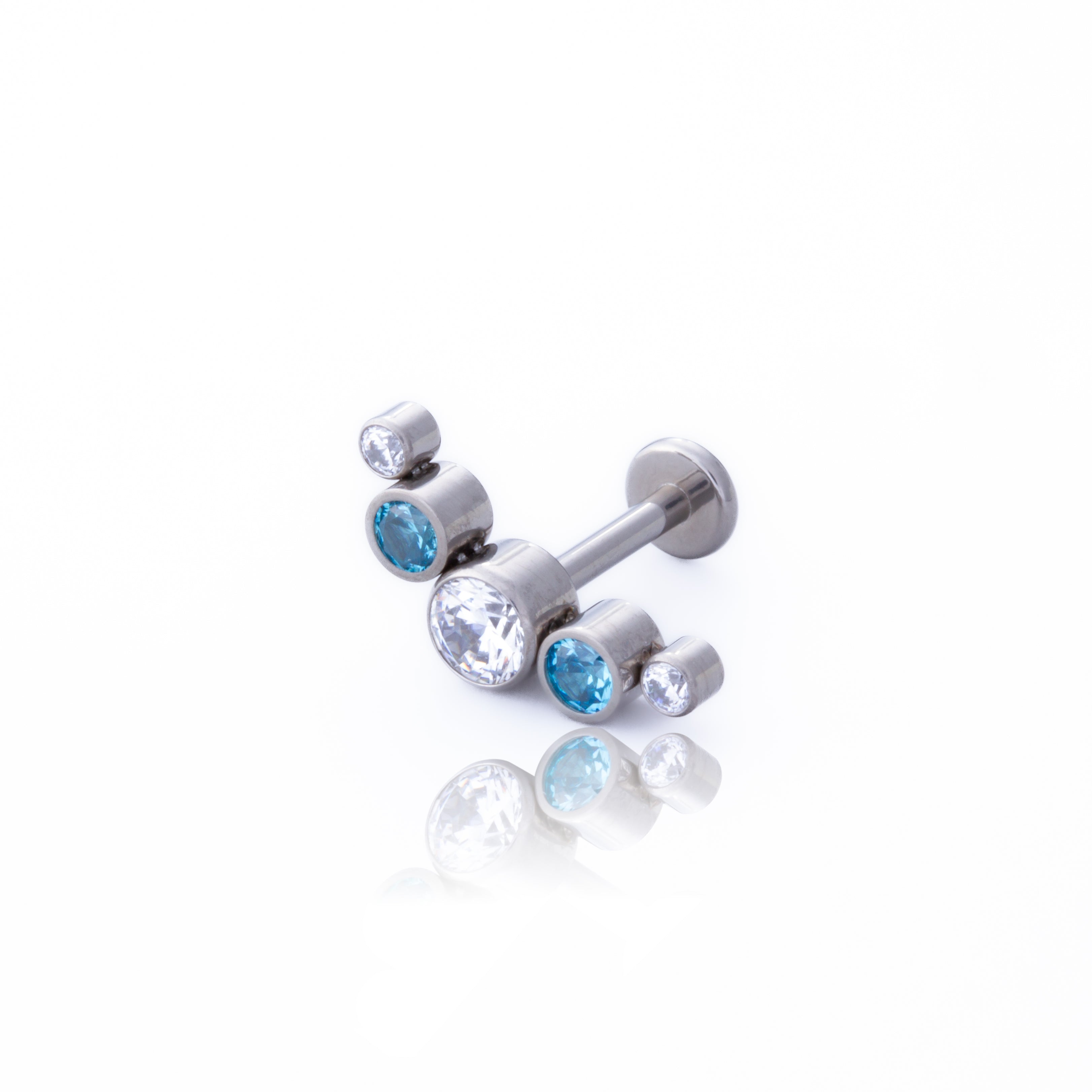 LABRET TITÂNIO R/I CLUSTER 5 PEDRAS - CRISTAL / AZUL