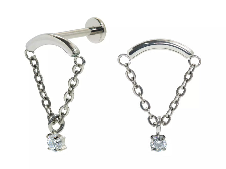 Ideal para: Perfurações de cartilagem como Flat (Scapha) e Hélix, onde a corrente pode cair elegantemente, dando a impressão de múltiplos piercings conectados.