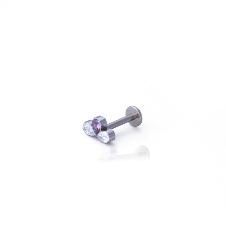 LABRET TITÂNIO R/I CLUSTER 3 PEDRAS MOD3 - LILÁS