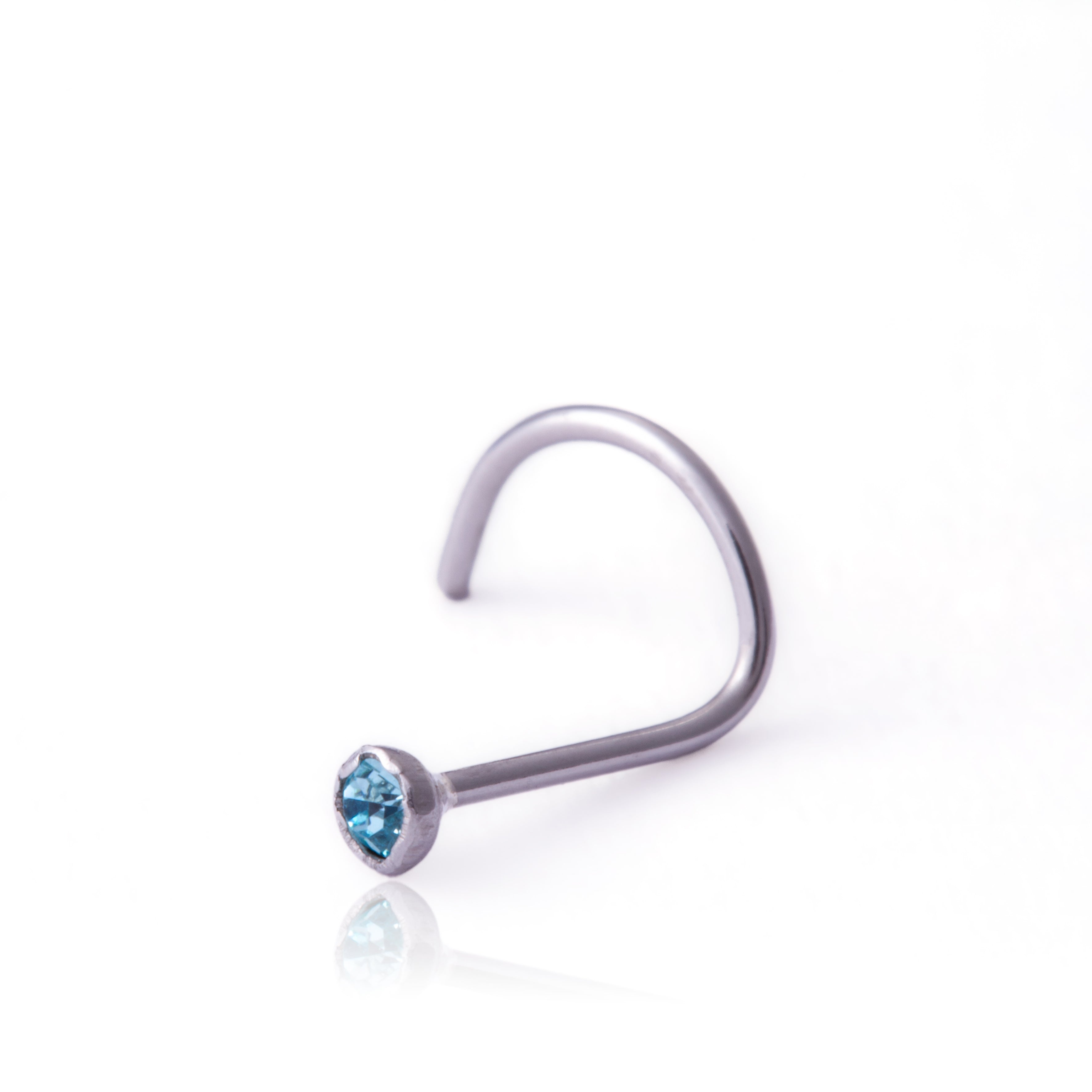 Design: É um pino de nariz (nose stud) com uma haste fina (0.6mm) e um strass (zircônia) colorido no topo.